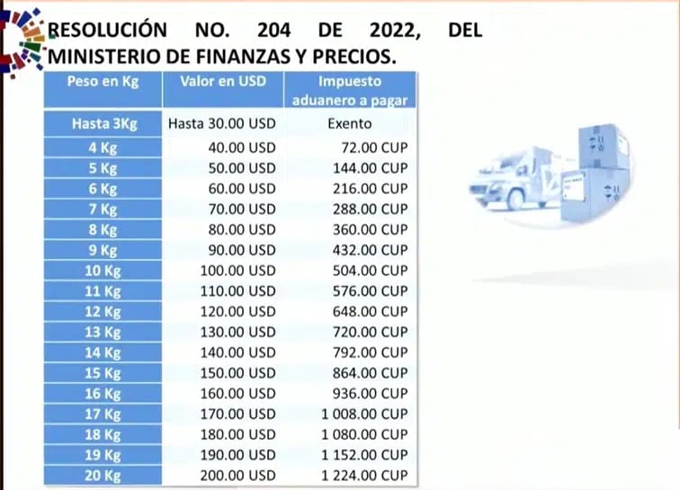 Aquí encontrarás el documento publicado en la Gaceta oficial de la República de Cuba el 28 de Julio del 2022. Donde se establece el valor de los productos y las cantidades permitidas. Se debe tener en cuenta que solo se permite como envíos, las mercancias que su valor en aduana no supere los 500 USD.